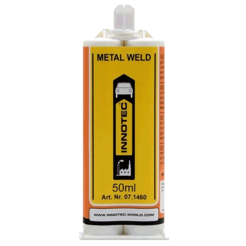 Metal Weld er nyeste generasjon 2-K Methacrylate lim (uten isocyanater) spesielt utviklet for å lime alle typer metaller og en mengde andre materialer, uten primer og aktivator.Metal Weld kan anvendes på karosserideler, ødelagte skjøter, brudd i metall osv.Produktet limer med høy styrke og holdbarhet på alle metaller (f.eks. stål og aluminium) men også de fleste andre materialer som kompositt. Metal Weld har unike vedheftsegenskaper samt en meget høy slitestyrke.Anvendes sammen med Mixer Nozzles (90.2908.0555)Metal Weld leveres i hvit, noe som i seg selv er uvanlig. Produktet er meget motstandsdyktig mot UV-stråler, kjemikalier og er værbestandig noe som gir en meget lang levetid uten at produktet gulner. Åpningstiden er 8-10 minutter noe som gir god tid til montering av deler. Produktet har høy viskositet som gjør det velegnet til liming på vertikale flater samt unike fyllegenskaper ved sår, hakk og gliper. Metal Weld leveres i en meget brukervennlig forpakning, klar til bruk. Produktet skal doseres ved hjelp av blanderør. I motsetning til andre to-komponentprodukter skal patronen forsegles med den originale hetten etter bruk.