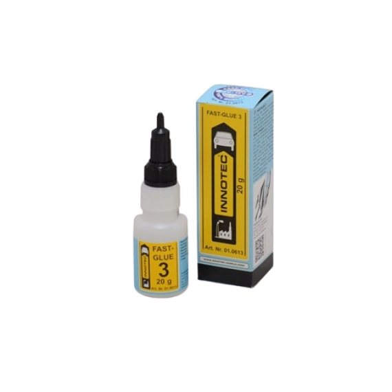 Fast-Glue 3 er den høye viskositetsvarianten. Dette er egnet til liming av harde materialer som metall og hard plast. Kan brukes med stor effekt, for eksempel til styrking av sprukne borehull og liming av ødelagte klemmer.