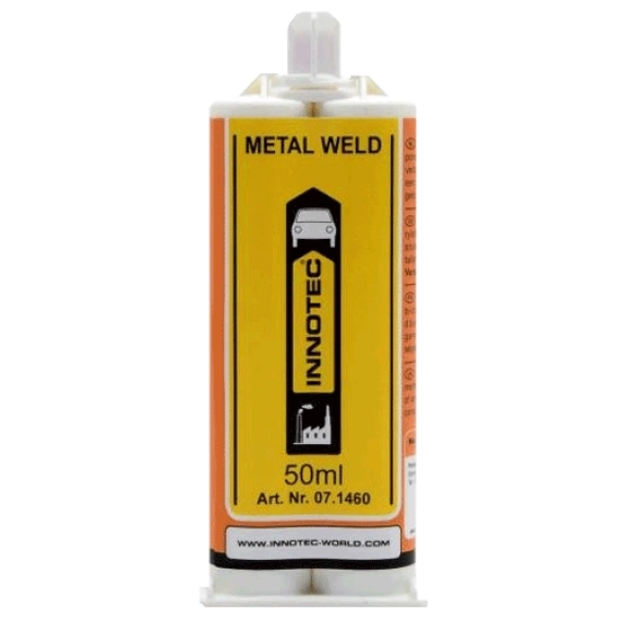 Metal Weld er nyeste generasjon 2-K Methacrylate lim (uten isocyanater) spesielt utviklet for å lime alle typer metaller og en mengde andre materialer, uten primer og aktivator.Metal Weld kan anvendes på karosserideler, ødelagte skjøter, brudd i metall osv.Produktet limer med høy styrke og holdbarhet på alle metaller (f.eks. stål og aluminium) men også de fleste andre materialer som kompositt. Metal Weld har unike vedheftsegenskaper samt en meget høy slitestyrke.Anvendes sammen med Mixer Nozzles (90.2908.0555)Metal Weld leveres i hvit, noe som i seg selv er uvanlig. Produktet er meget motstandsdyktig mot UV-stråler, kjemikalier og er værbestandig noe som gir en meget lang levetid uten at produktet gulner. Åpningstiden er 8-10 minutter noe som gir god tid til montering av deler. Produktet har høy viskositet som gjør det velegnet til liming på vertikale flater samt unike fyllegenskaper ved sår, hakk og gliper. Metal Weld leveres i en meget brukervennlig forpakning, klar til bruk. Produktet skal doseres ved hjelp av blanderør. I motsetning til andre to-komponentprodukter skal patronen forsegles med den originale hetten etter bruk.