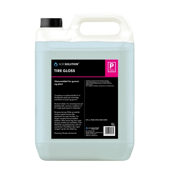 Nor Solution Rubber & Plast Gloss er et glansmiddel for å tilbakestille glans på utvendige overflater av plast og gummi.