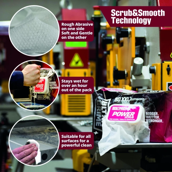 Enten du trenger å vaske bort olje, fett, blekk, maling, silikoner eller uherdet PU-skum, vil UltraGrime® Pro Power Scrub Wipes håndtere det.
